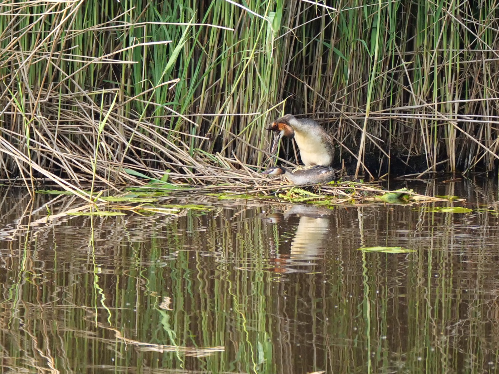 FOTO PAGINA Natuurgebieden in de gemeente Heusden » Afwateringskanaal - (Drongelens-kanaal) Futenpaar op nest Afbeelding 27 van 84 - FUUT / PODICEPS CRISTATUS - paartje op hun tweede nest, het eerste nest kwam onder water door hoge waterstand - Afwateringskanaal; 10-5-2024 Fotograaf Martin Vissers