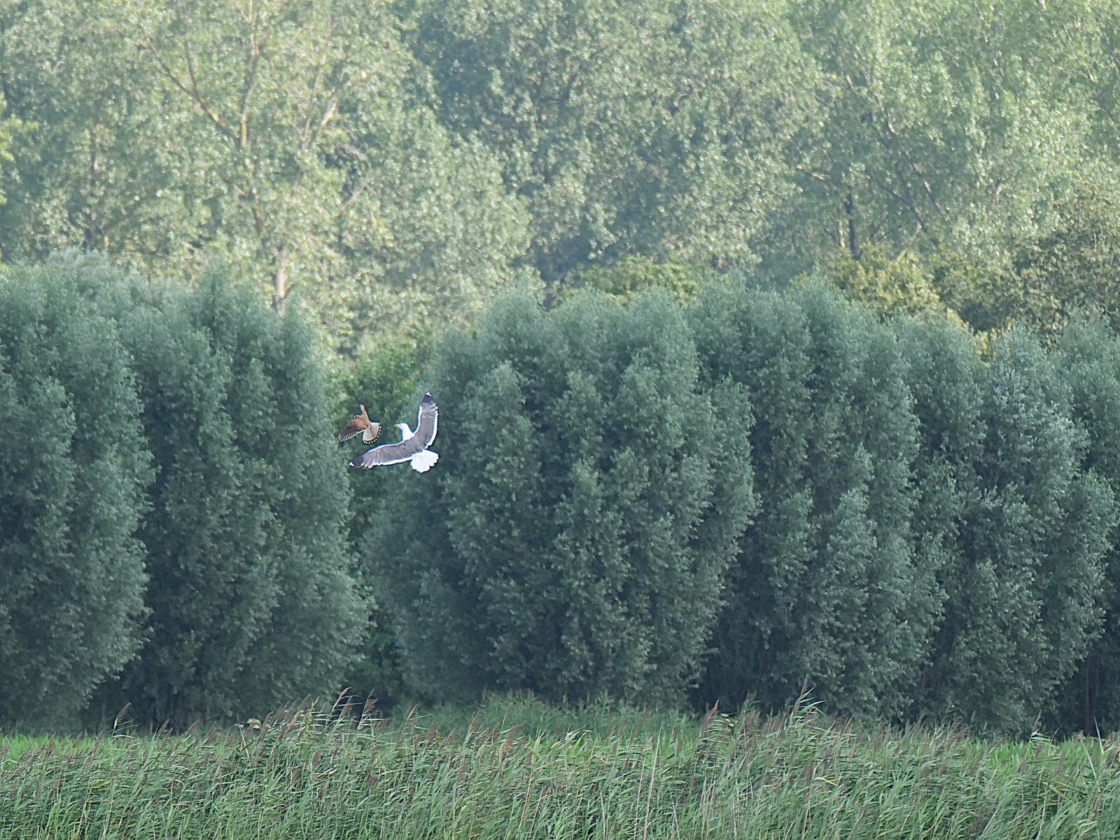 FOTO PAGINA Natuurgebieden in de gemeente Heusden » Hooibroeken Schermutseling tussen torenvalk en kleine mantelmeeuw Afbeelding 2 van 68 - TORENVALK / FALCO TINNUNCULUS en KLEINE MANTELMEEUW / LARUS FUSCUS - verwikkeld in een korte schermutseling; Hooibroeken; 28-6-2024 Fotograaf Martin VIssers